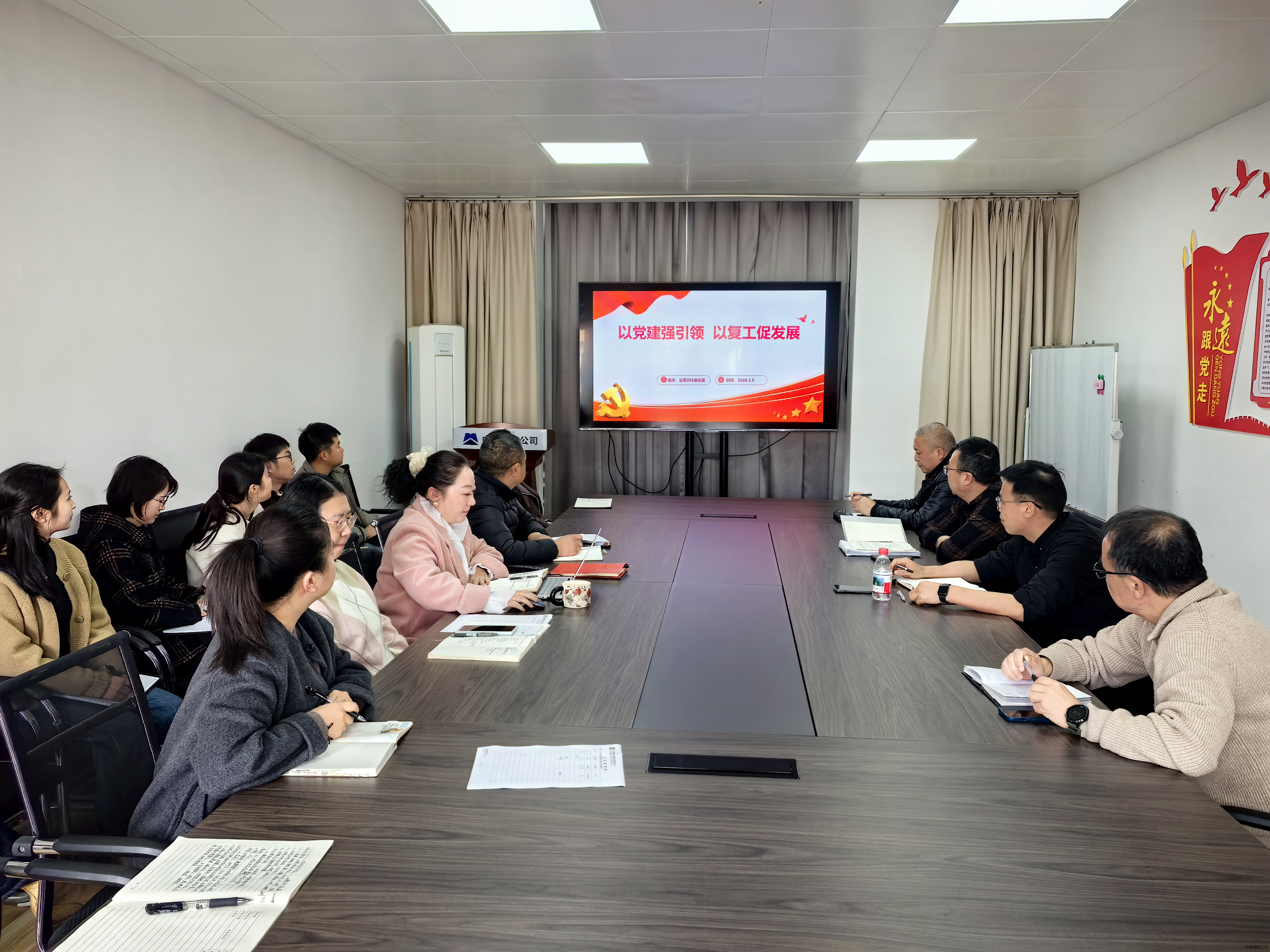为深入贯彻“党建引领促发展”理念,全力冲刺“十五五”开局之年首季“开门红”,3月5日,公司召开以“以党建强引领 以复工促发展”为主题的复工复产工作部署会。会议听取各部门3月重点工作计划汇报,相关领导对3月核心工作进行系统安排,公司执行董事、总经理陈强总领全局并作总结讲话。
